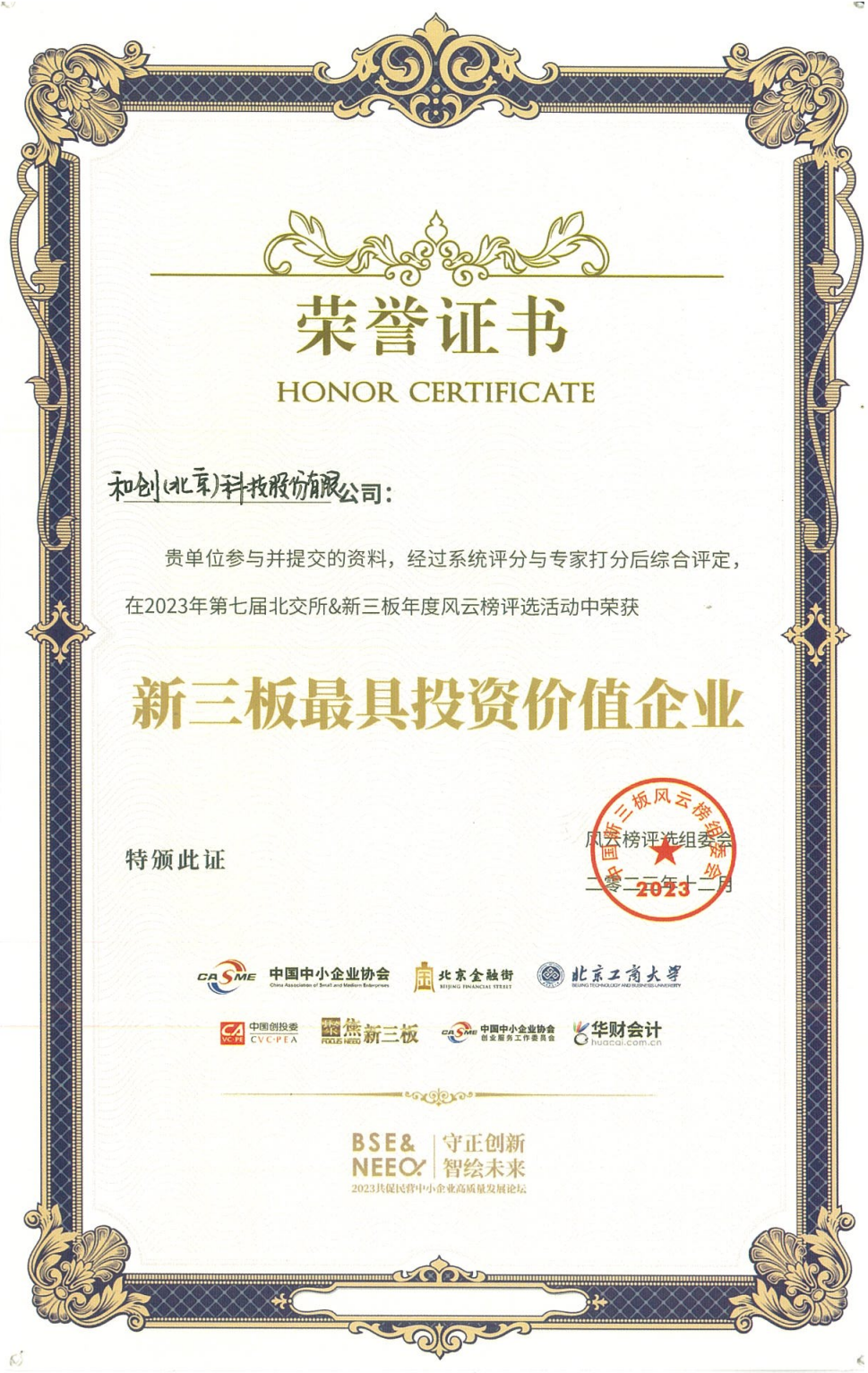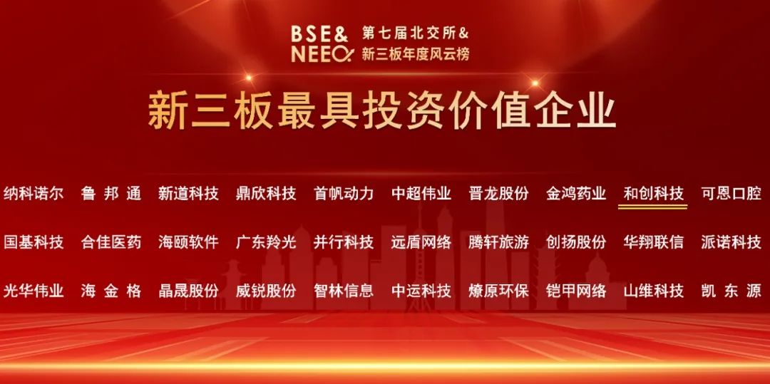 和創(chuàng)科技斬獲第七屆北交所&新三板年度風(fēng)云榜“新三板最具投資價值企業(yè)”等兩項殊榮