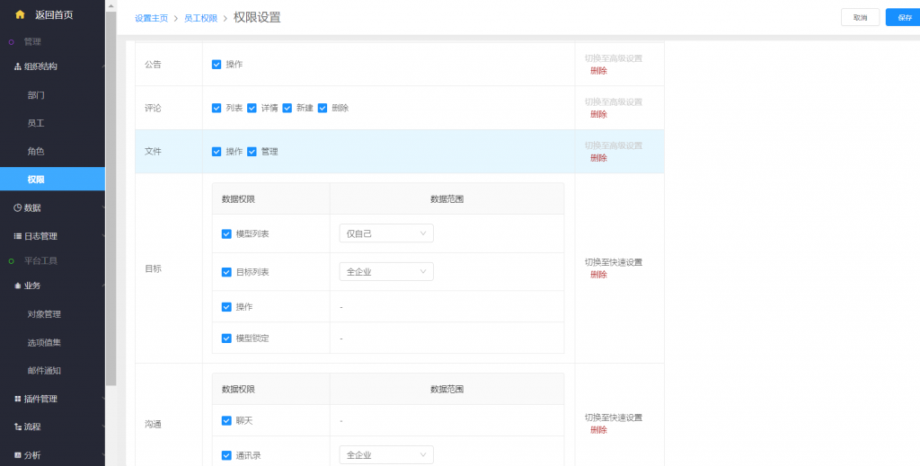 - 升級(jí)后,權(quán)限組設(shè)置中的應(yīng)用操作,文件應(yīng)用設(shè)置中增加了“管理”選項(xiàng)。