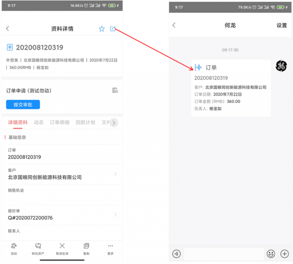 - 手機(jī)端可分享業(yè)務(wù)數(shù)據(jù)至IM,接受方可直接打開(kāi),但需要校驗(yàn)數(shù)據(jù)權(quán)限