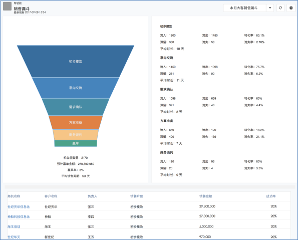 紅圈CRM+能夠幫助企業建立全面的項目信息,使企業清楚地了解各個項目的進展情況,并通過對銷售漏斗的管理,幫助企業清晰地掌握項目在不同銷售階段的轉化情況等數據,這樣企業能夠及時發現銷售過程中的障礙和瓶頸,從而優化最有效的轉化路徑,提升銷售成單率。