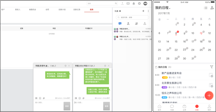 紅圈CRM+能夠幫助企業員工圍繞業務緊密協同,例如項目進展信息在項目成員中共享,再如通過移動的考勤、日程、審批、公告等,提高跨團隊協同工作的效率,快速推動銷售、施工等各項工作。