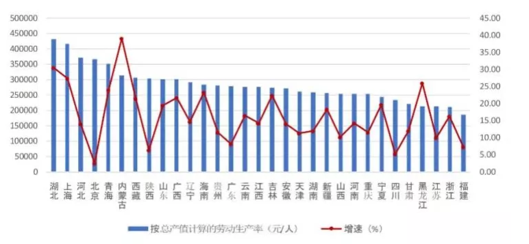 圖6 2021年上半年各地區(qū)建筑業(yè)勞動生產(chǎn)率及其增長情況