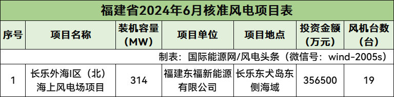 福建核準1個風電項目,總規(guī)模314MW,為海上風電項目。