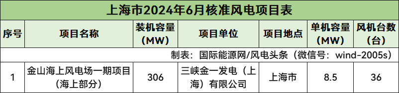 上海核準1個風電項目,總規(guī)模306MW,為海上風電項目。