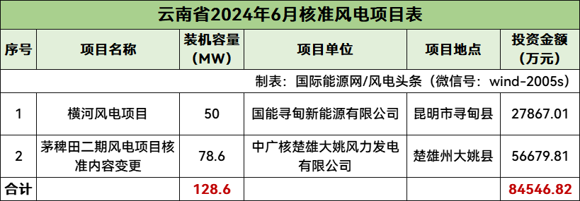 云南核準2個風電項目,總規(guī)模128.6MW,總投資84546.82萬元,均為陸上風電項目。