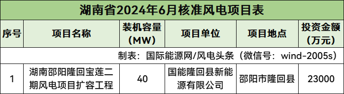 湖南核準1個風電項目,總規(guī)模40MW,總投資23000萬元,為陸上風電項目。