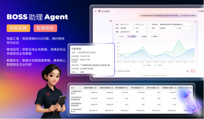 與傳統(tǒng)“問助理→問財務→做報表→等匯總”的流程相比,智能報數(shù)方案實現(xiàn)了“老板問AI→AI秒級回應”的升級,讓管理者第一時間獲取數(shù)據(jù),24小時待命,工作穩(wěn)定高效。BOSS助理Agent真正成為企業(yè)管理層的智能數(shù)據(jù)官,讓決策更快、管理更精益。