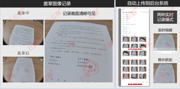 全程監(jiān)控影像留痕:設(shè)備內(nèi)置高清攝像頭,在每次蓋印動作觸發(fā)時,強(qiáng)制對文件內(nèi)容進(jìn)行拍照并錄制動態(tài)視頻,完整記錄用印人、用印文件、周邊環(huán)境等信息,所有影像資料實時上傳至云端安全存儲。