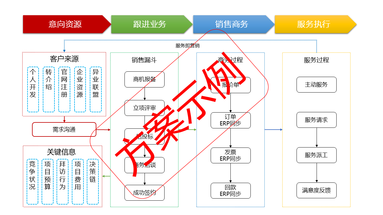 CRM以項(xiàng)目為主線,貫穿整個(gè)項(xiàng)目生命周期,協(xié)同管理不同階段的相關(guān)業(yè)務(wù)。將為不同角色提供特定的信息共享和評(píng)審功能,對(duì)控制點(diǎn)進(jìn)行管理:項(xiàng)目階段按統(tǒng)一的規(guī)范設(shè)置,便于統(tǒng)計(jì)分析;項(xiàng)目各階段可以設(shè)置里程碑及提醒與報(bào)警功能(可向預(yù)定的管理者報(bào)警);在項(xiàng)目過程中,能夠管理合作伙伴與競(jìng)爭(zhēng)者、項(xiàng)目文檔、項(xiàng)目團(tuán)隊(duì)組建(包括權(quán)限管理)、項(xiàng)目計(jì)劃。
